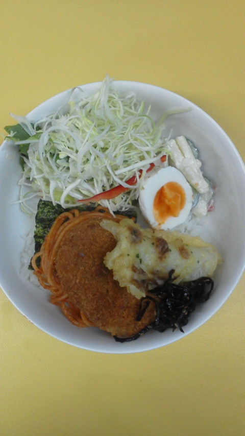 4月22日 コロッケ丼ですヽ(^^)みんな大好きコロッケです♪コロスケはやっぱりコロッケが好きなのかなぁ〜(・・?余談…(^^;)