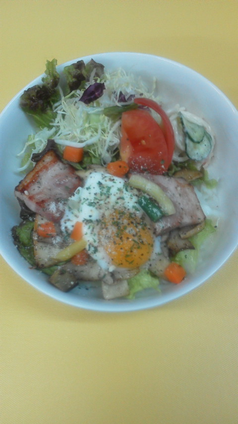 5月14日 ベーコンカルボナーラ風丼ですヽ(^^) MOCO’sキッチンでレシピしました(^^ゞ もこみちクンみたいに最後に1メートル上からブラックペッパーをかけるのがミソ(≧∀≦) ハイ!出来上がり(^-^)/~~