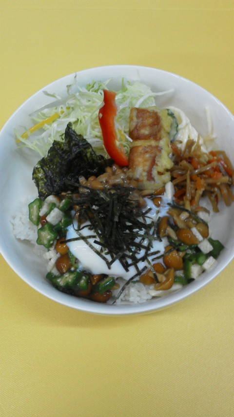 6月10日 ネバネバ丼ですヽ(^^)暑さに負けないように(>_<)精力付けてください!私も頑張ります(^-^)v今日もしかして…ボーナス(?_?)