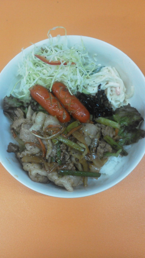 6月20日 豚カルビ丼ですヽ(^^) 豚はビタミンBが豊富に入っていますので疲労回復にはNo.1です(^-^)v昨日バテバテのみかこさんリポビタンを飲んで仕事に頑張っています(‘-^*)okそしてランチを食べたら…ヾ(^▽^)ノ 眠くなりました…今週もお疲れ様でした…(^^ゞ