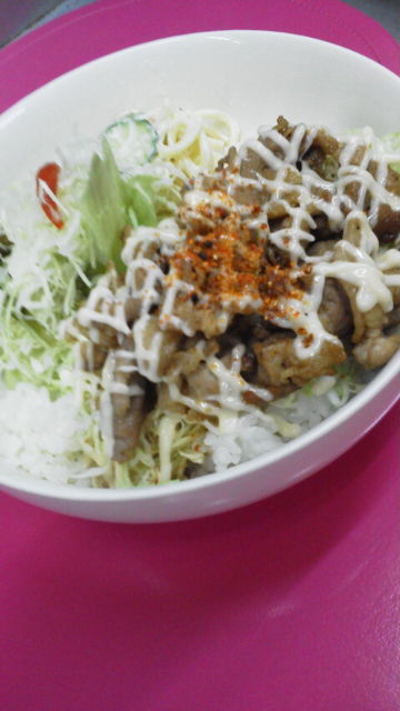 9月17日マヨ豚丼ですヽ(^^)豚肉は糖質代謝にかかわり疲労回復に役立つビタミンB1が豊富です(^-^)vキャベツには免疫力の向上に働くイソチオシアネートが含まれているので病気に負けない身体作りに役立ちますよ〜!あーあ今日は教養的な事を真面目に言ったわ(≧∀≦)たまにはね…