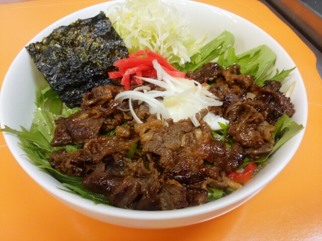 10月2日焼き肉丼です(^_^)/真ん中に温泉たまごが入っていますよ~♪ビビンバ風に食べると又美味しいです(^^)今日はまりかちゃんの誕生日です\(^_^)/お誕生日おめでとう♪