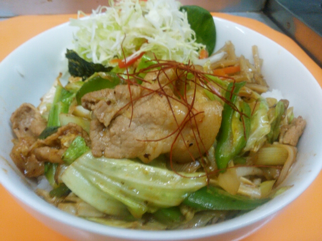 10月15日回鍋肉丼です(^_^)/キャベツと肉はあなたと私のよう…(#^.^#)相性が良いのよ♪食べて~\(^_^)/
