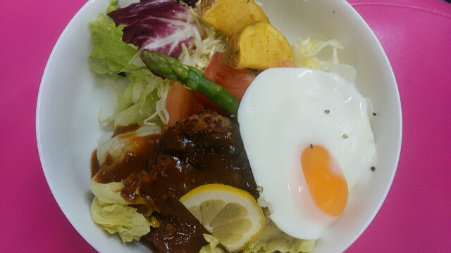 12月4日ロコモコ丼です(^_^)/ワイハ~をイメージして作りました!しかしながら…まだワイハ~には行った事もなく残念デス(>_<)いつかいきたぁ~い♪デス♪と言う事で願いも込めて(^^)ロコモコです♪