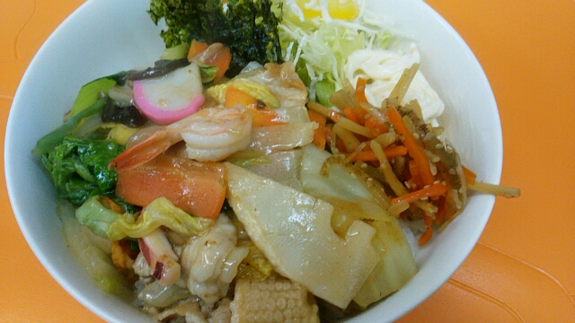 1月13日八宝菜丼です(^_^)/連休いかがでしたか?御成人になられた皆さんおめでとうございますm(__)m私は何年前だったかなぁ…(^^;野菜をいっぱい食べてやさしく…さぁ今日も頑張りマス\(^_^)/