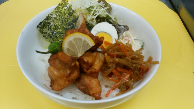 1月14日鶏唐丼です(^_^)/皆が大好き鶏唐デス(^^)私の得意の料理の一つです(^_^)V今日は久しぶりの青空デスね~♪午後はココロでも行こうかなァ~♪