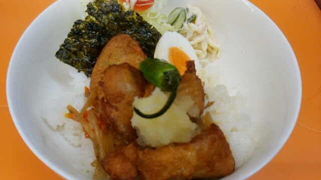 1月28日和風鶏唐丼です(^_^)/キンピラをしいてその上に唐揚げを浸して和風デス(^^)やっぱり大根おろしを添えて…♪日本人やなぁ~(-_-)いりりんたまに食べに来てくださいね(^_^)/