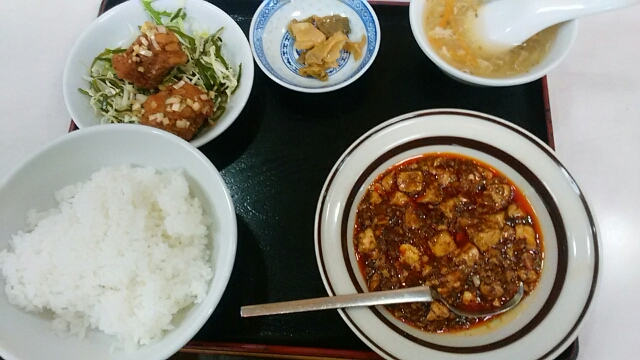 今日は天気も良く(^_^)/Myチャリに乗って来ました♪麻婆豆腐と油淋鶏です(^^)いたたきますm(__)m