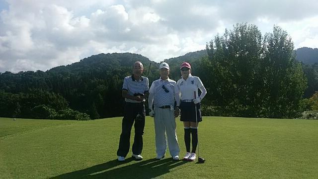 9月の秋晴れです(^_^)/今日はグリーンヒルで日曜日月例ゴルフコンペです♪最高の天気です\(^_^)/最高のシルバーメンバーです↑佐太郎ちゃんウッチャンそしてカズちゃん(^_^)V