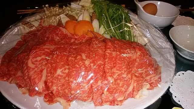 ううううまそ~(>_<)クリスマスすき焼きです(^_^)/ごつぁんです(^^)